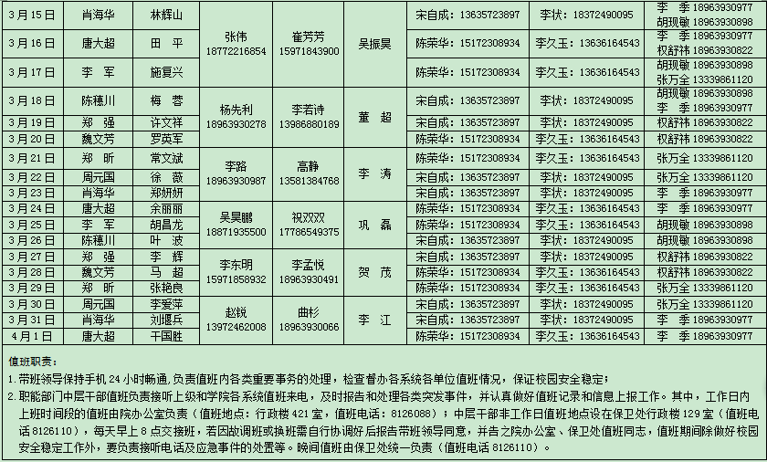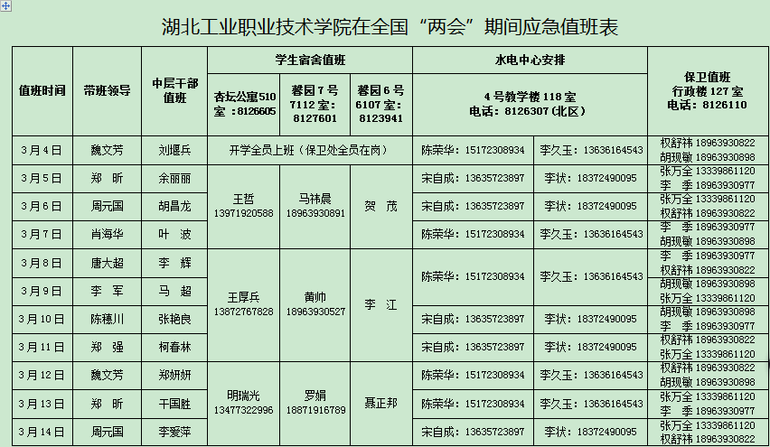 根据市委办公室市政府办公室《关于加强全国“两会”期间值班工作》(【2018】24号)精神,制订了《乐鱼买球·(中国)官方网站在全国“两会”期间应急值班表》,现将应急值班表印发给你们,请严格抓好落实。