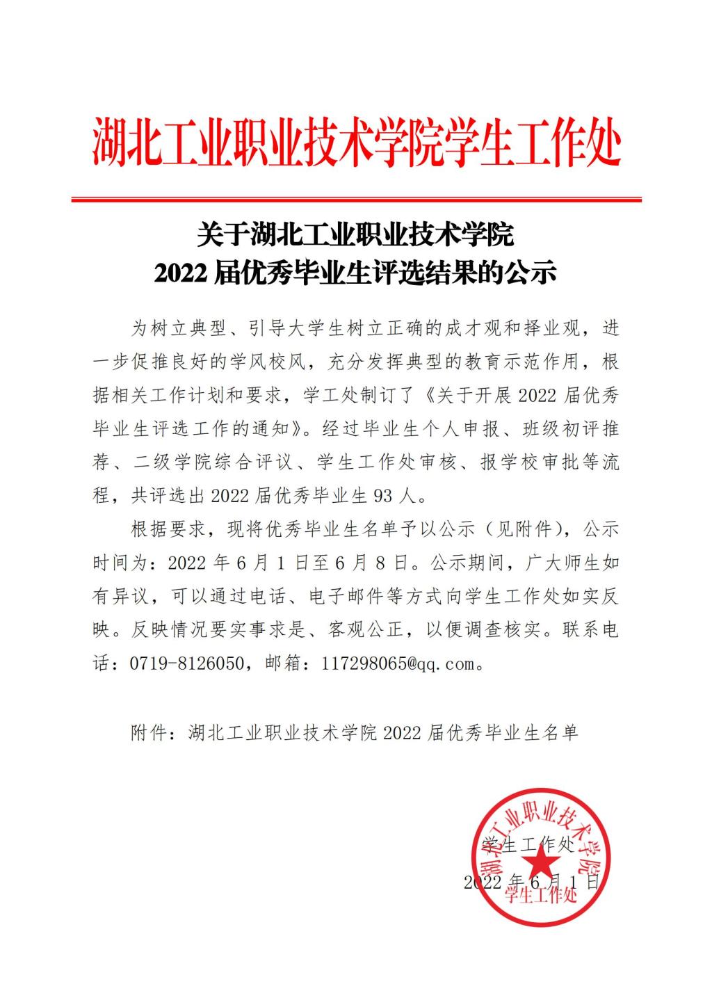 关于乐鱼买球·(中国)官方网站2022 届优秀毕业生评选结果的公示