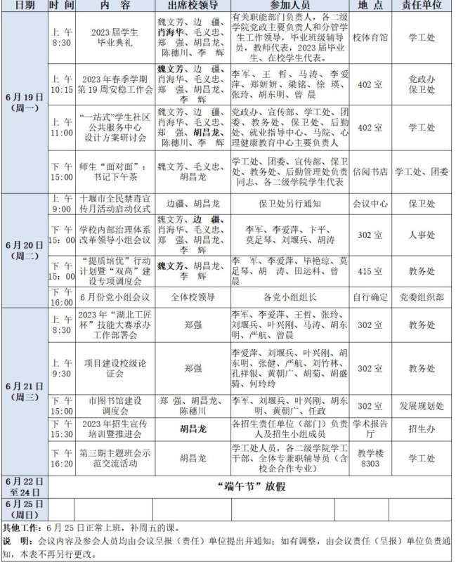 (2023年6月19日至2023年6月25日/值班领导:肖海华)