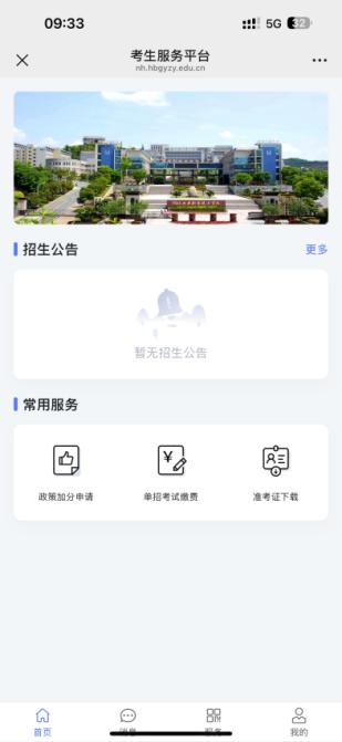 2.扫描成功后,进入考生服务平台,如下图所示: