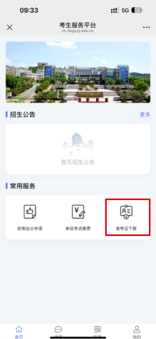 6.1点击"乐鱼买球·(中国)官方网站"按钮回到主页,在"常用服务"里点击"准考证下载",进入准考证页面,如下图所示: