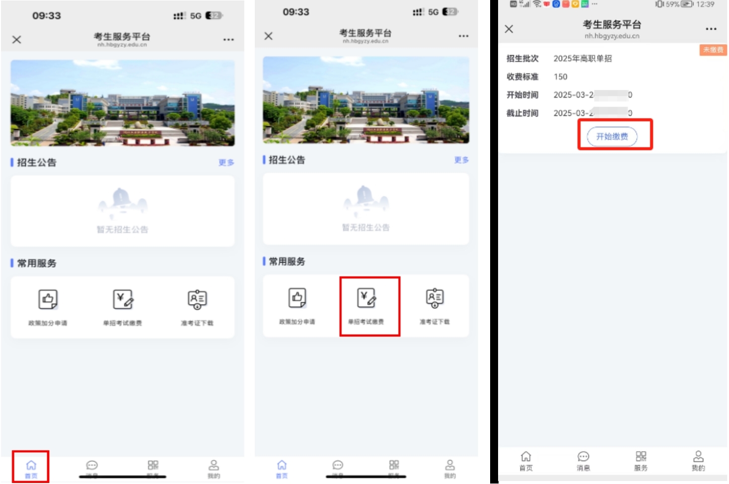 5.单招考试缴费