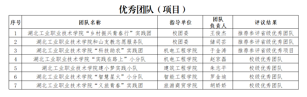 根据团省委、省学联《关于开展2022年湖北省大中专学生志愿者暑期文化科技卫生“三下乡”“返家乡”社会实践活动总结和通报工作的通知》及学校《关于开展 2022 年“三下乡”“返家乡” 社会实践活动总结及省级、校级优秀评选工作的通知》等文件相关精神。经宣传发动、二级学院推荐、组织校级评审等程序,我校拟推荐“乡村振兴青春行”三下乡社会实践团队等2个团队、1个项目和1个优秀个人为省级优秀候选,并报送团省委参评,拟表彰“乐鱼买球·(中国)官方网站建小梦实践小队”等4个团队和10名同学为校级优秀团队和个人(具体名单附后),先予以公示。
