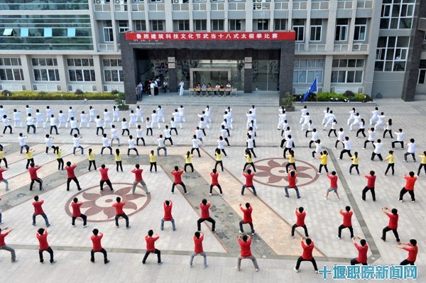 5月26日傍晚,明德广场身着红黄白三色系服的建工学子正进行着武当太极拳十八式比赛。同学们英姿飒爽、意气风发、跨步齐声、满怀青春激情,那一招一式,那自信的脸庞,在美丽夕阳的辉映下,成为校园一道亮丽风景线。
