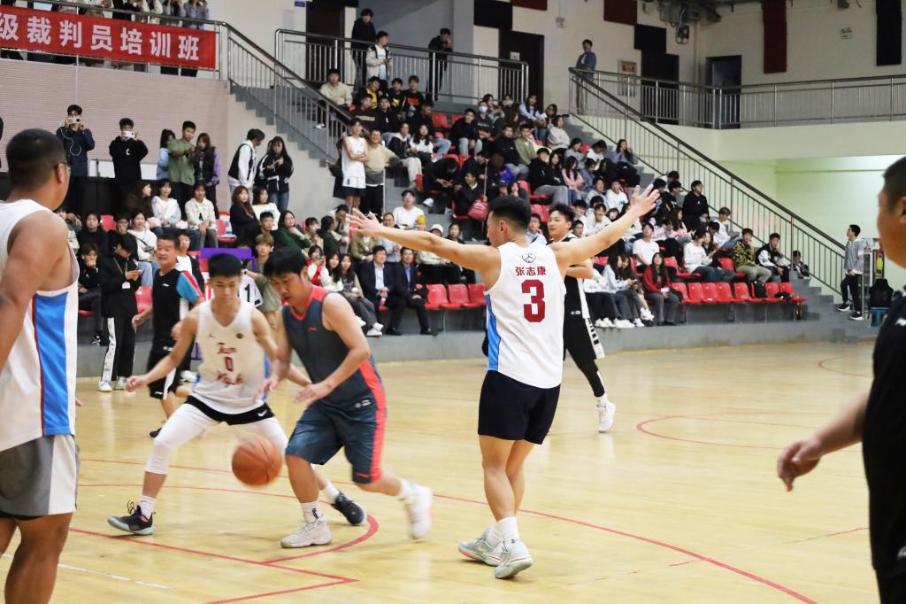 学生健美操协会《舞动青春》啦啦操表演结束后,教职工代表队和学生代表队的篮球表演赛拉开了本次球类比赛大幕。球员们奋力拼搏、激情满怀、密切配合,通过一次次精准的投篮、巧妙的跑位、流畅的传球,给观众们呈现了一场精彩绝伦的篮球视觉盛宴。