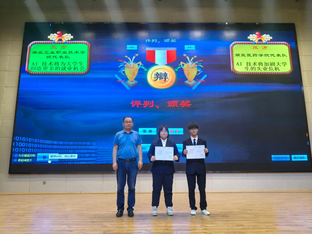 黄镜潮老师在点评中肯定了双方在论据建构、临场应变上的亮点,他指出,辩论赛不仅是语言的较量,更是思维的锤炼,此次辩论引导大家以更理性的态度对待AI带来的机遇与挑战。最终,我校四辩张浩同学、湖北医药学院二辩刘雅芸同学凭借出色的表现荣获“最佳辩手”荣誉,其他参赛选手获“优秀辩手”。