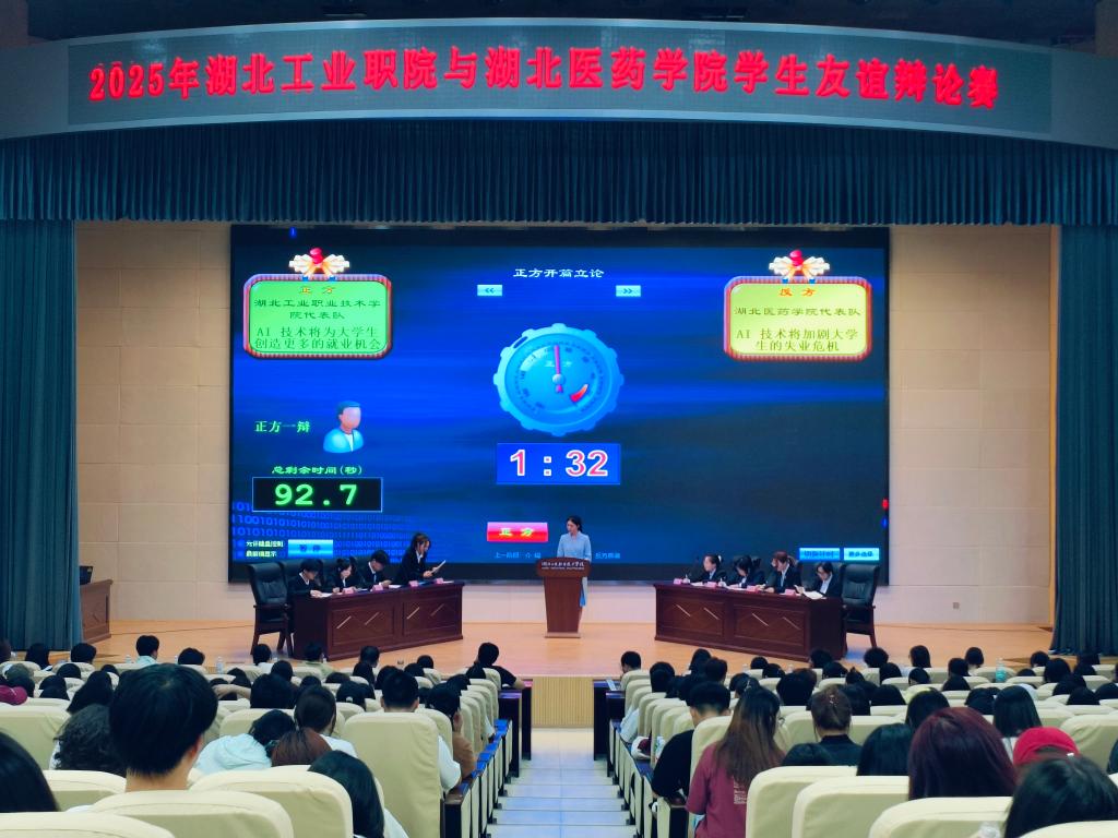 本场辩论赛正方乐鱼买球·(中国)官方网站代表队以“AI技术将为大学生创造更多的就业机会”立论,反方湖北医药学院代表队则以“AI技术将加剧大学生的失业危机”展开辩驳。双方紧扣AI技术对传统岗位的替代效应与新兴岗位的创造动能,结合社会现状,从技术伦理、职业重构、教育适配等多重维度,激辩AI时代下青年学生就业的破局之路。辩手们逻辑严密、攻防有序,既有数据支撑的理性论证,也有贴近现实的案例剖析。现场金句频出,掌声不断。