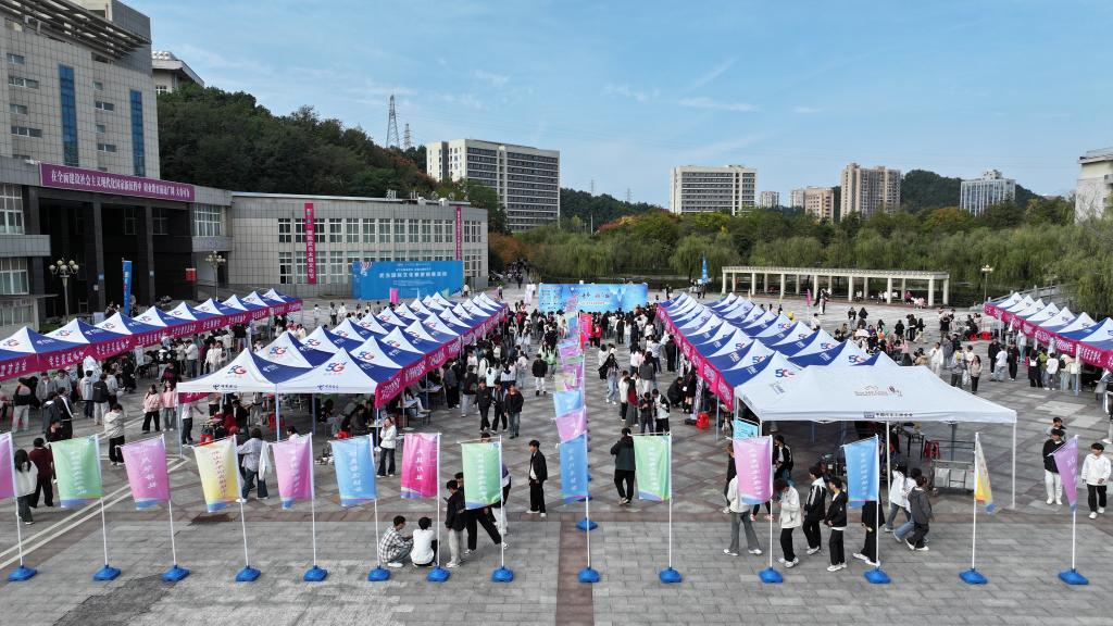 新闻网讯(文/郑丽琼 图/杨学全 张士于)悦己青春,越己社团。10月26日,由校团委主办,校青协、校学生会社团管理部承办的2025年学生社团集中宣传纳新活动在慧智广场举行。全校七个类别62个社团齐聚一堂,通过丰富多彩的展示形式,吸引了众多2025级新生驻足咨询、踊跃报名,同学们满怀热情地穿梭于各个展位之间,积极寻找着心仪的社团。这场热闹的“青春之约”,不仅是新生探索兴趣航向、锤炼综合能力的新起点,更为秋日校园注入了蓬勃的青春活力。
